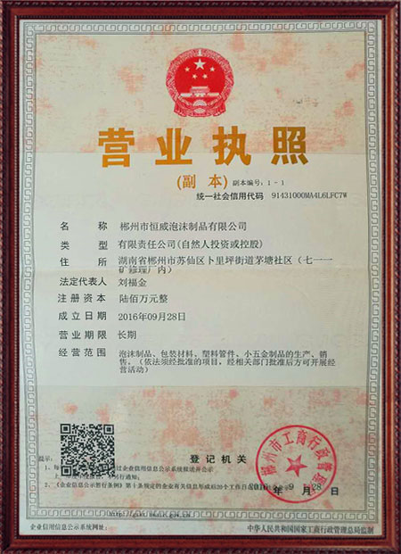 郴州市恒威泡沫制品有限公司成立于2016年9月28日,位于郴州市蘇仙區許家洞鎮71 1華湘工程公司大院內,廠房面積約10000平方米,公司注冊資金600余萬元。公司擁有現代化的生產車間、發料間、烘烤房、鍋爐房、切割車間、倉庫、辦公區等,一應設施設備齊全。